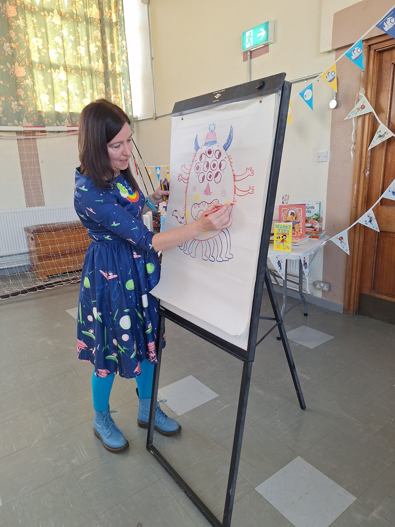 I have facilitated Monster Doodles in Schools and Libraries. These involve me showing the children how to draw a monster. They then get to have fun and draw their own monsters on a monster piece of paper.